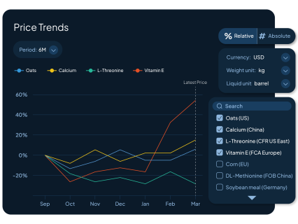 The all-in-one market information, purchasing and sales platform for animal and human nutrition and health raw materials.
