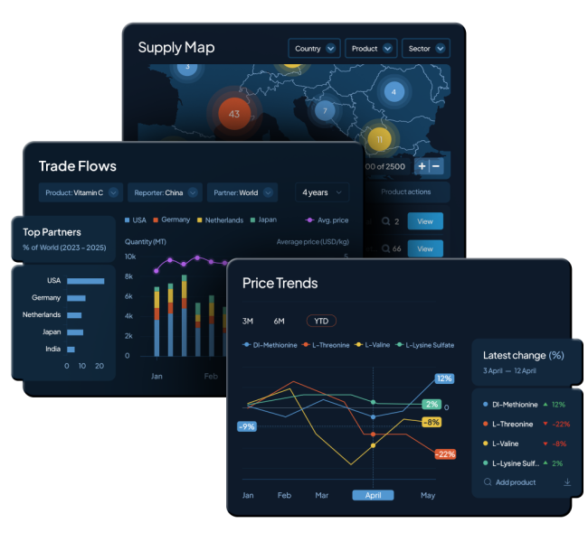 - Feed Producers & Premix Manufacturers: Gain visibility into ingredient price movements, global supply trends and supplier activity