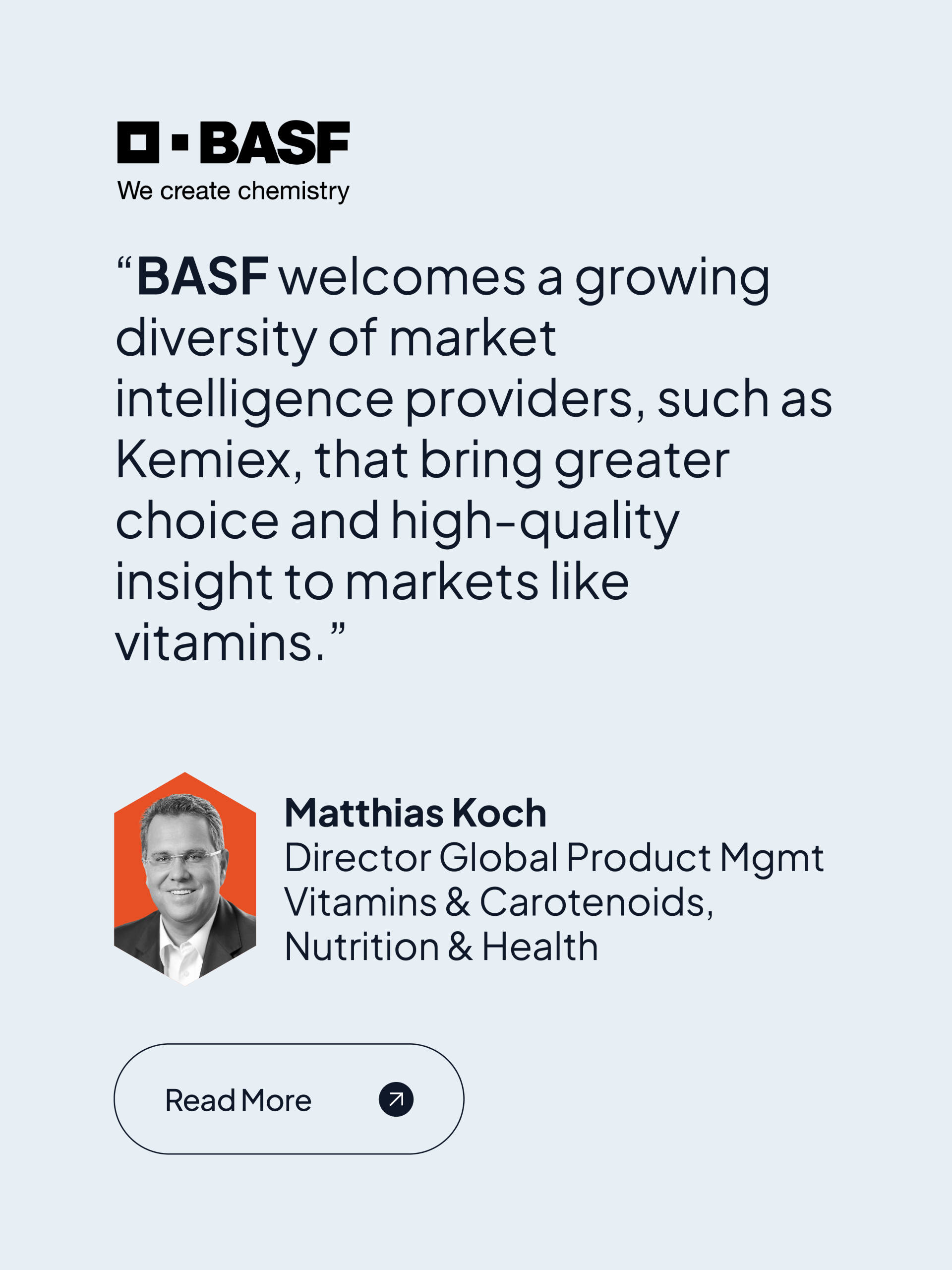 Kemiex, a key source of market intelligence, analysis and vitamin prices for BASF