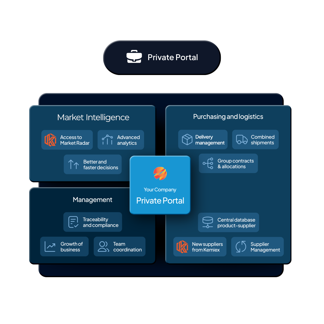 Kemiex’s Private Portal centralizes supplier communication, contract management, and documentation – making collaboration smoother, faster, and fully traceable.