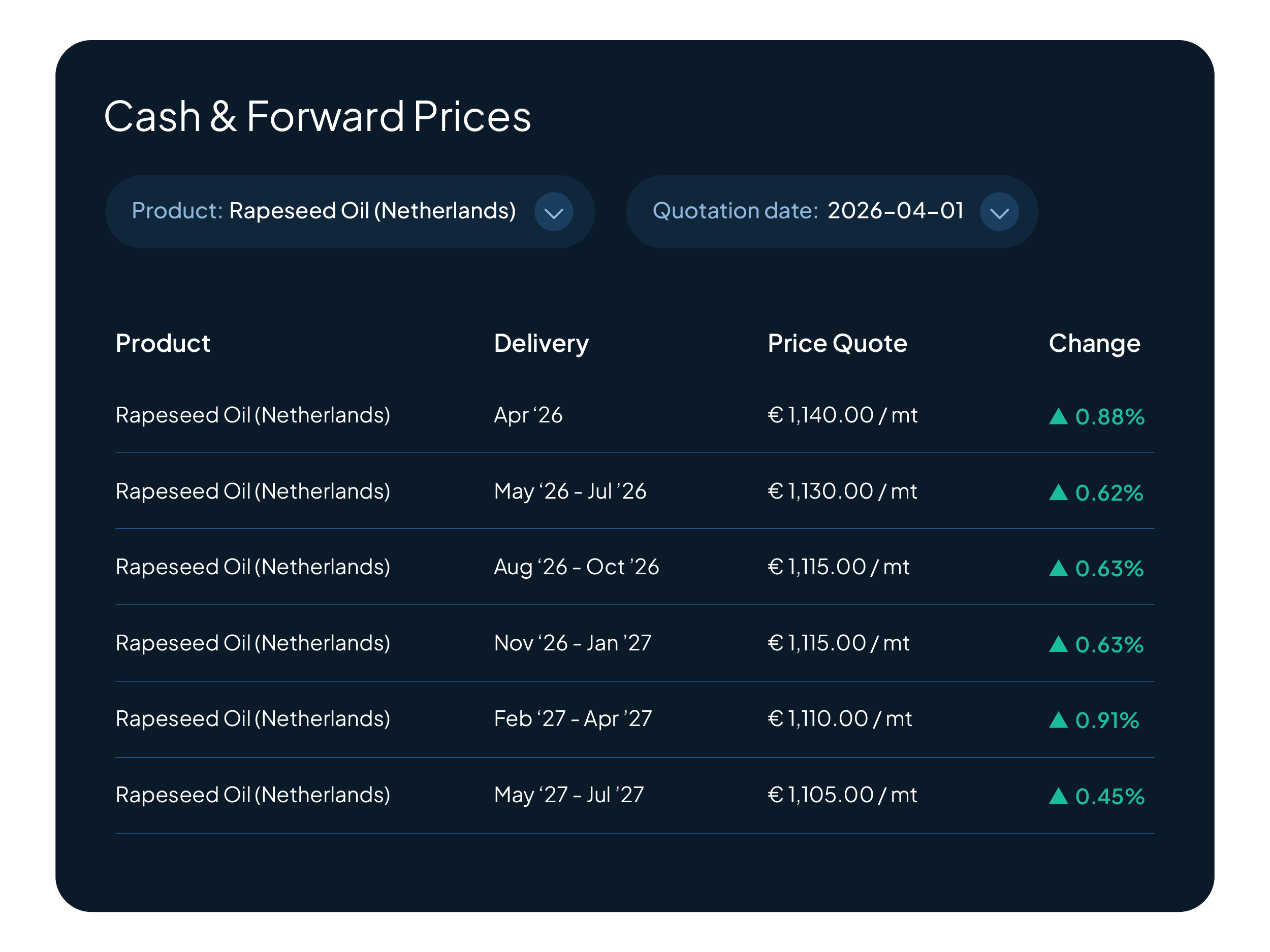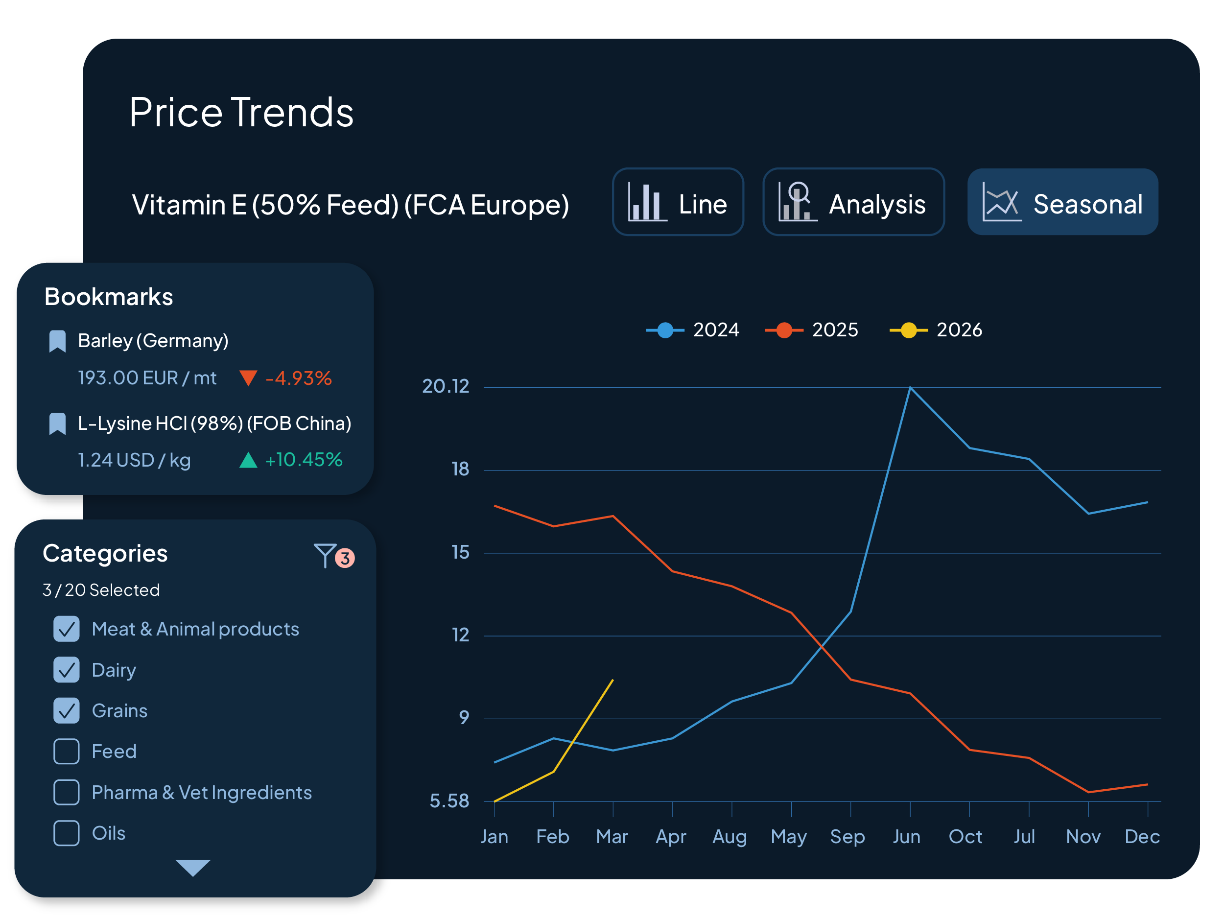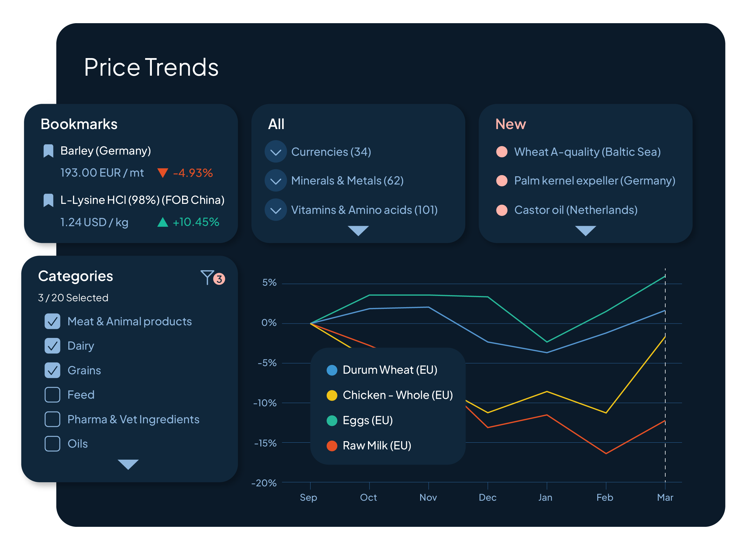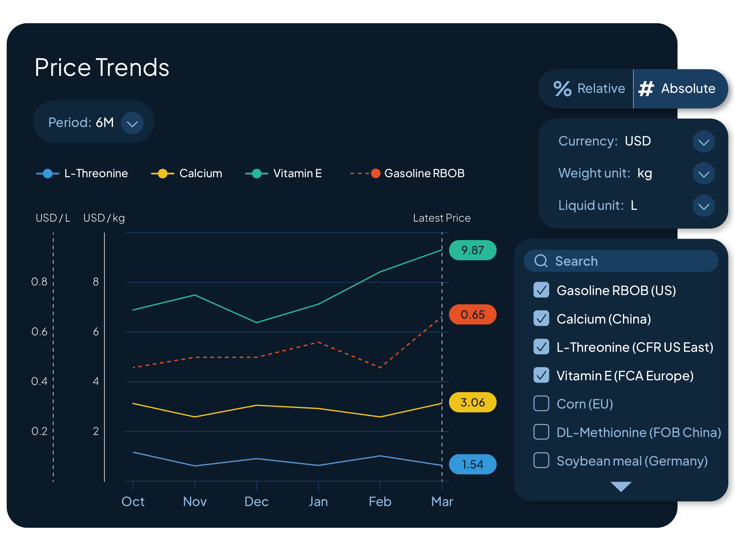 Price Trends brings these signals together in one place, allowing you to track how prices evolve across commodities, regions, and time.